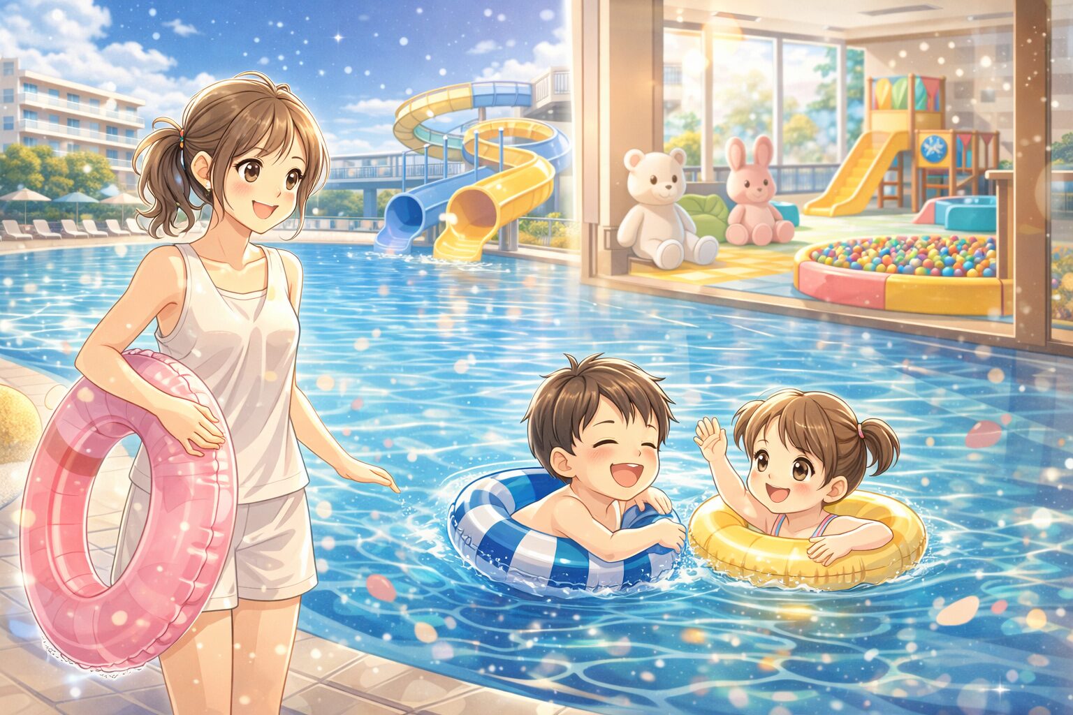でも実は、北関東には「ホテルだけで1日過ごせる」子連れに優しい宿がたくさんあるんです。プール、キッズルーム、温泉、バイキング…館内の設備が充実しているから、観光に出なくても子どもたちは大満足。雨の日でも心配なし!