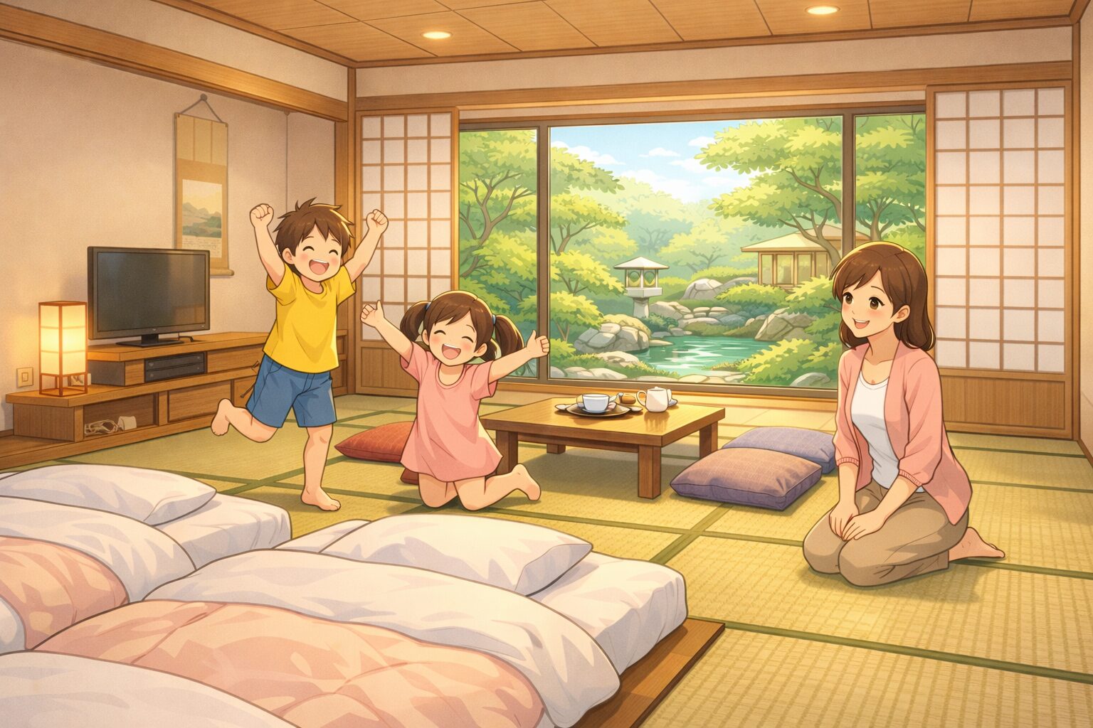 サンリオピューロランドで思いっきり遊んだ後は、和室でのんびりくつろいで、家族みんなで楽しい旅の思い出を作ってくださいね♪